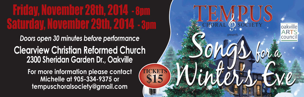 Tempus Choral Society.We presenting a special concert November 8, A CANADIAN CHORAL SOUNDSCAPE, at the Oakville Conference Centre.